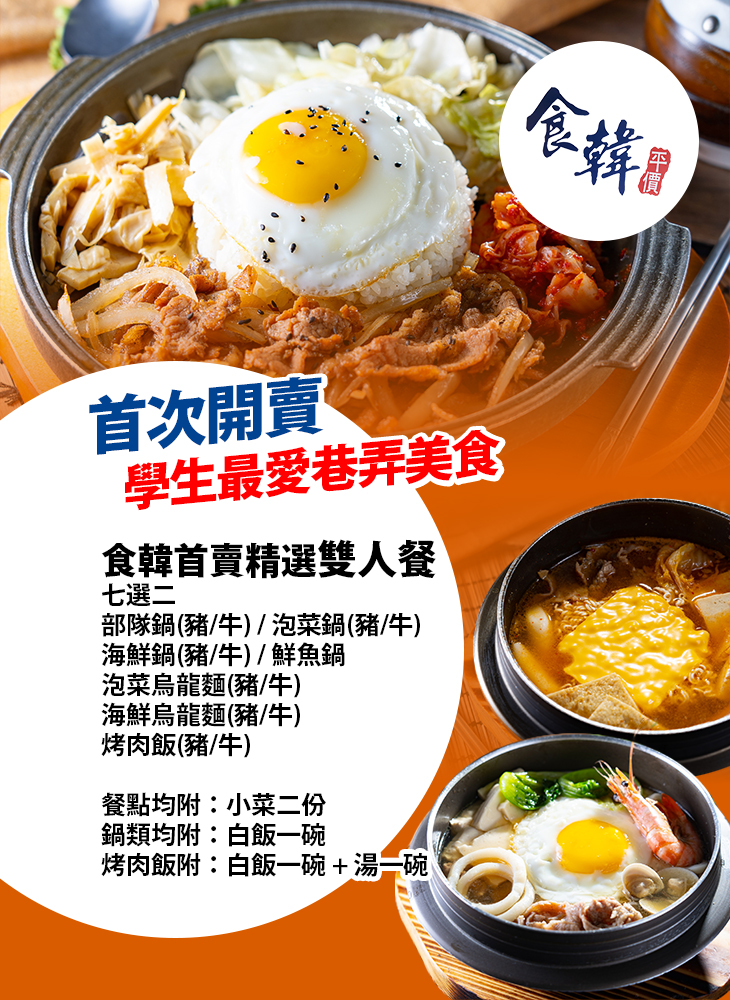 맛있는!透過道道傳統、經典美味的韓式料理,讓您對韓國飲食文化有更進一步的認識!位於台中市龍井區新興路上的【食韓平價韓式料理】,乾淨、簡約的空間環境,給人舒適、自在的用餐心情,餐點販售以韓式風味料理為主,無論是鮮度破表的海鮮鍋、令人垂涎三尺的烤肉飯還是軟Q帶勁的辣炒年糕,樣樣美味、樣樣推薦!本次與GOMAJI更推出麻吉獨享超值優惠,高CP值料理,讓您幸福、美味同時擁有!