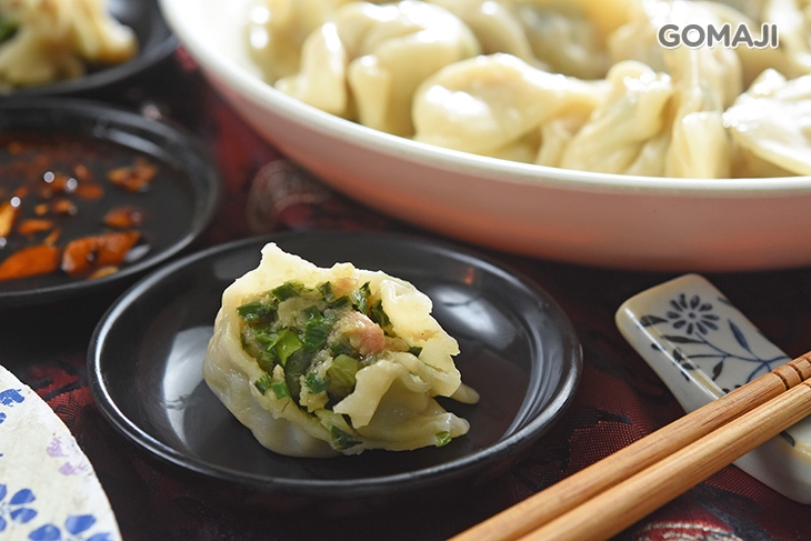 嚴選台產三星蔥,搭配新鮮豬絞肉而成的自製內餡,熟練的包入水餃皮中,將水餃下鍋水煮後盛盤,朵朵如花的三星蔥豬肉水餃就這樣完成囉!一口咬下,先是吃到三星蔥的甜,再著是吃到豬肉的香,兩種滋味,在嘴裡交緻出獨特又迷人的風味,不用沾醬就十分美味喲!