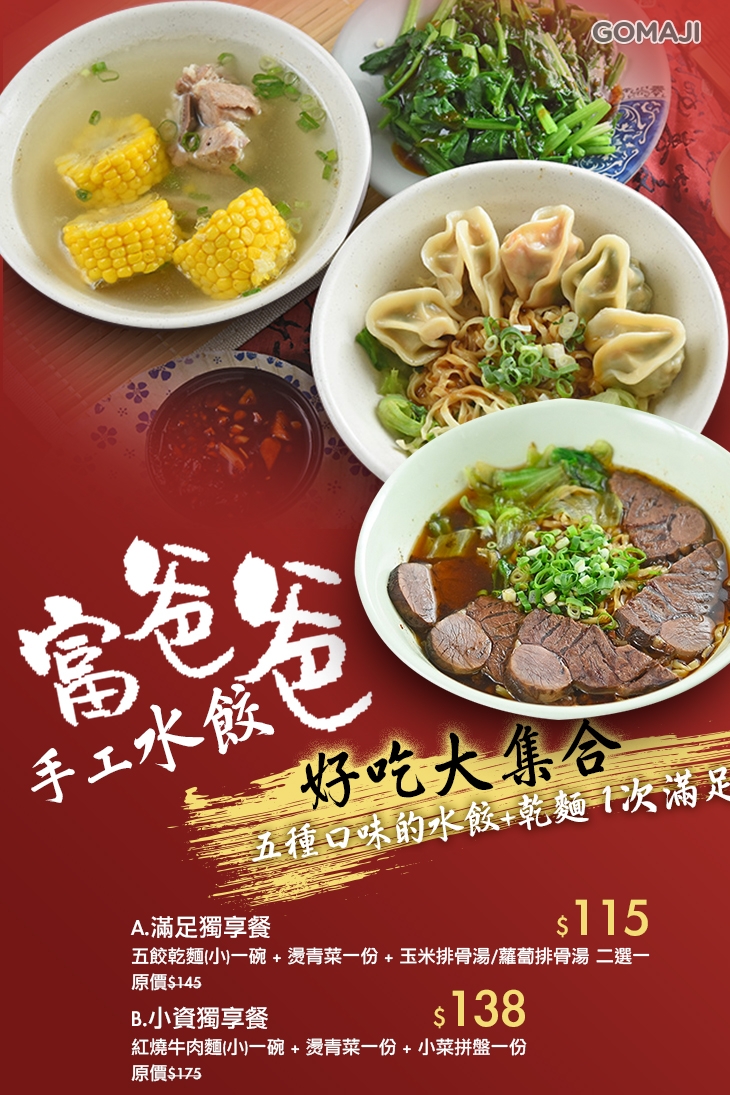 來到【富爸爸手工水餃】,除了招牌水餃必點外,還有一道您絕對不容錯過的 - 紅燒牛肉麵,片片厚實的燉牛肉,筋肉參半、軟嫩不柴的口感,店家在料理上可是下足了功夫!麵條一盛、鋪上牛肉、高湯一淋,紅燒的香氣陣陣撲鼻!大口吸麵,再配一口肉,啊 ~~ 這幸福誰能懂!味美汁鮮!堪稱經典中的經典!