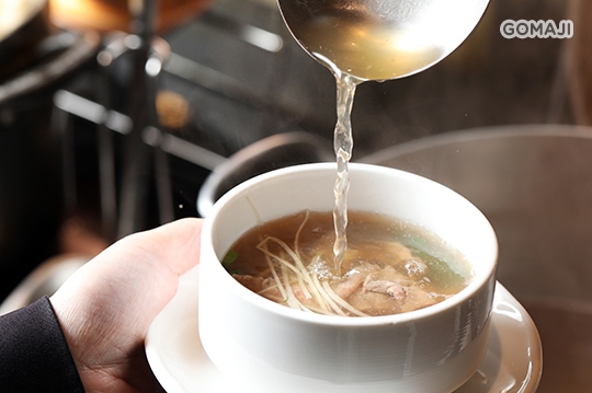 來自台南府城的經典吃法,先來暖暖胃吧。加佐料入碗,接著夾牛肉片放置其內,約莫四片最能沖出牛肉的鮮美甘醇,最後淋入熱騰騰高湯,Bob's your uncle!