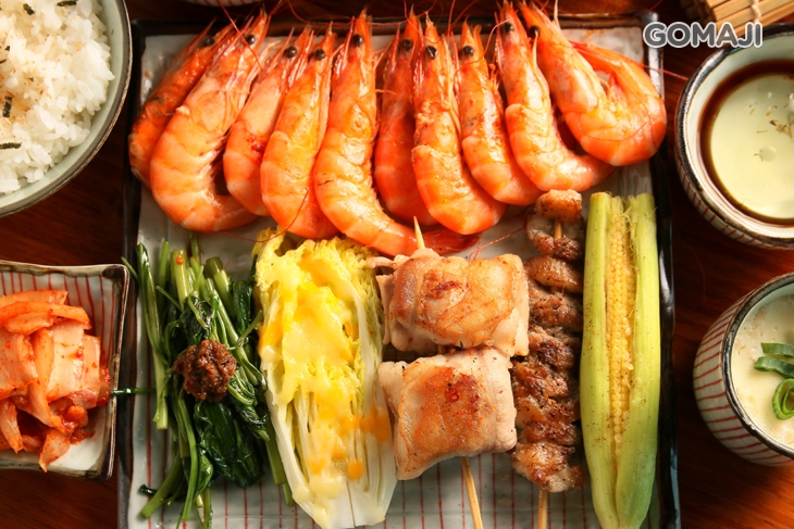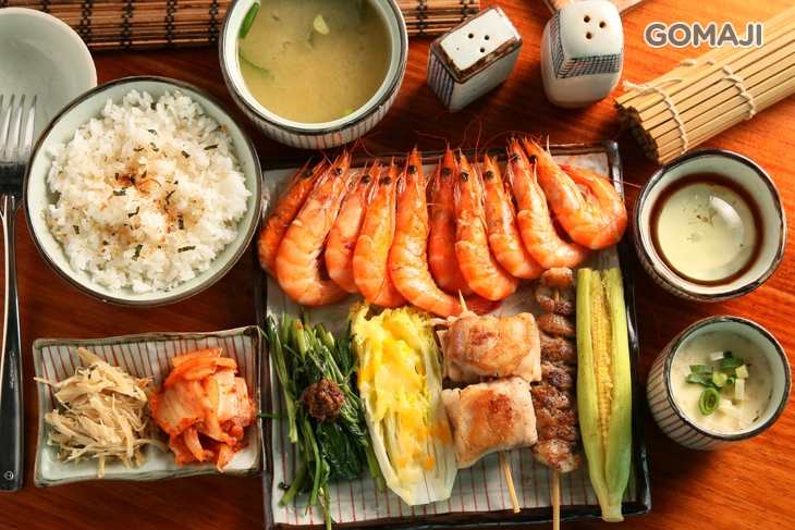 飽滿白蝦經主廚精心調製,擺盤如畫的佳餚呈現在您眼前,橘紅美豔色澤在盤中閃閃發亮,輕輕剝開蝦殼,甘甜汁液緩緩流出,嚐起來更是鮮甜不已!附餐有豬肉糯米串、鮮炒時蔬、起司娃娃菜等多樣食材搭配,豐盛又下飯,不一會兒,盤底瞬間見空,最後以日式甜品畫下完美的句點,真的好幸福~