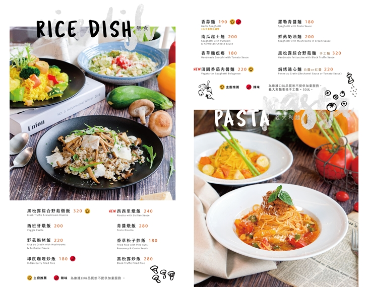 主廚推薦,蛋奶素可食的黑松露綜合野菇麵,使用滿滿香氣豐盈、高雅的黑松露和新鮮的綜合野菇料理,濃郁的醬汁,飽含黑松露的芬芳,加上野菇帶有脆度與韌性的口感點綴其中,創造出極佳的味覺享受,伴隨彈牙勁道的義大利麵一同享用,令人齒頰留香的一品,保證讓您的味蕾留下深刻印象!
