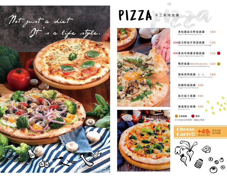 超人氣的手工窯烤披薩,餅皮口感與一般美式披薩不同,較為薄脆且有韌性,細細咀嚼,可以品味到麵粉的香氣與高溫窯爐火烤厚的焦香。經典的瑪格莉特口味酸爽又促進食慾,搭配僅僅使用多種起司搭配窯烤而成的香濃起司披薩,兩種不同的口感體驗,讓您大飽口福!