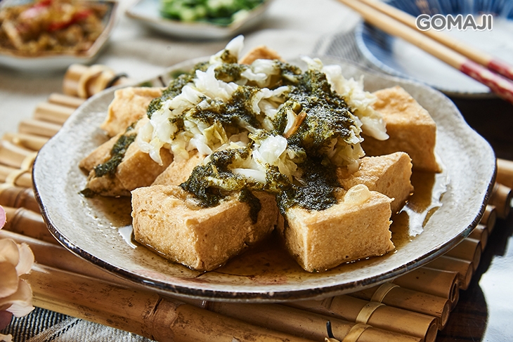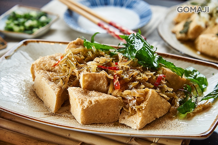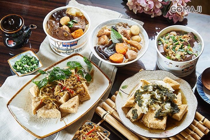 金黃酥香的原味臭豆腐,撒上椒鹽增味提香,搭配脆甜的酸菜與九層塔一起享用,分明層次在口中迸發迷人風味,愈吃愈涮嘴,完全停不下來!