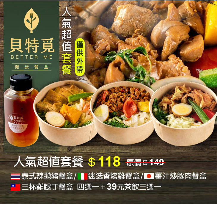 堅持少油、少鹽、無味精的健康餐盒,有五星主廚及營養師的把關,嚴選新鮮食材,透過極簡的烹調方式,完美地呈現食材本身的美味與營養,專注於研發能帶給人幸福感的美味健康餐,是貝特覓健康餐的初衷,立志於打破大家對於健康餐乏味的印象,透過好的食材、健康的烹調方式、實在的用料,讓您維持好體態的同時也能滿足口腹之慾,不管是上班族、健身族、外食族...從現在開始你可以有更好照顧自己的方法!讓它成為您的餐食新選擇~真心推薦!