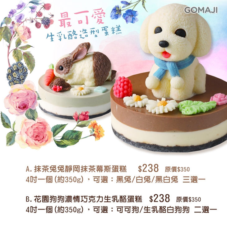 B.花園狗狗濃情巧克力生乳酪4吋蛋糕一個(約350g)