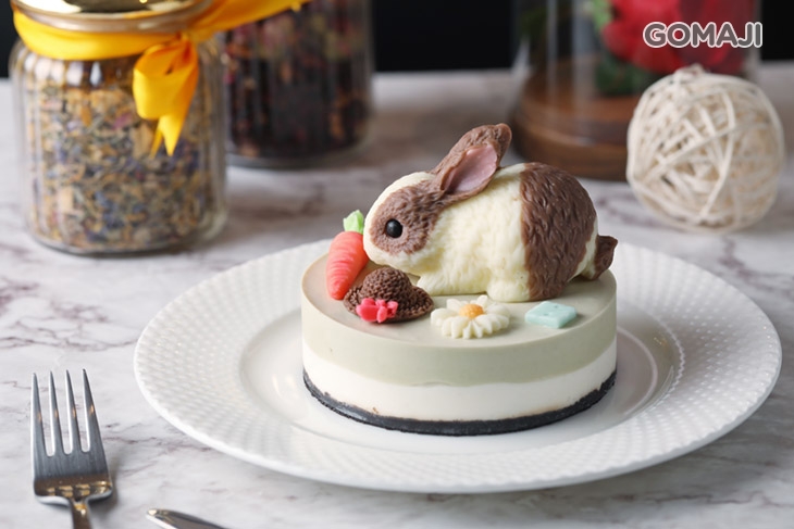 夢幻滿分的兔兔造型,擁有著細緻的紋路、栩栩如生的雙眸,令人不禁讚嘆甜點師的巧手,裝飾的作工也非常精緻,完美的呈現出夢幻花園的感覺 ♥