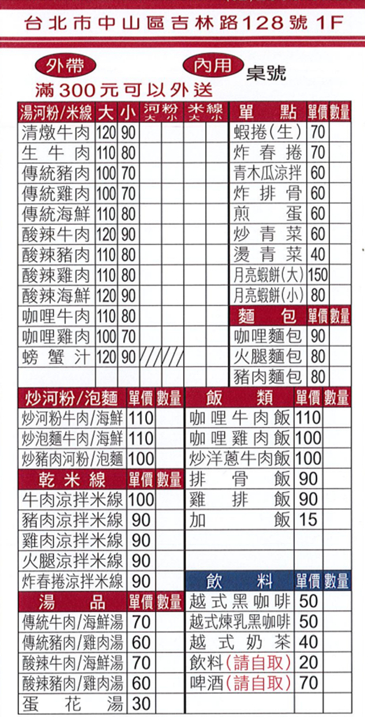 - - - - - 小明越南河粉為您獻上菜單 - - - - -