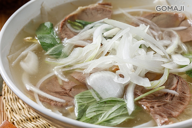 「老闆,來份清燉牛肉河粉,謝謝。」精選優質牛肉,將汆燙好的河粉,以迅速俐落的身手舀進碗裡,鋪上牛肉片,放上大量的洋蔥絲及九層塔點綴!最後淋上熱騰騰、費時熬煮的鮮美高湯,牛肉軟嫩、河粉滑順、高湯清醇!料香味美!本店必點!