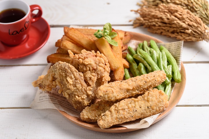 美式原味炸雞翅、檸檬雞柳、四季豆、地瓜薯條