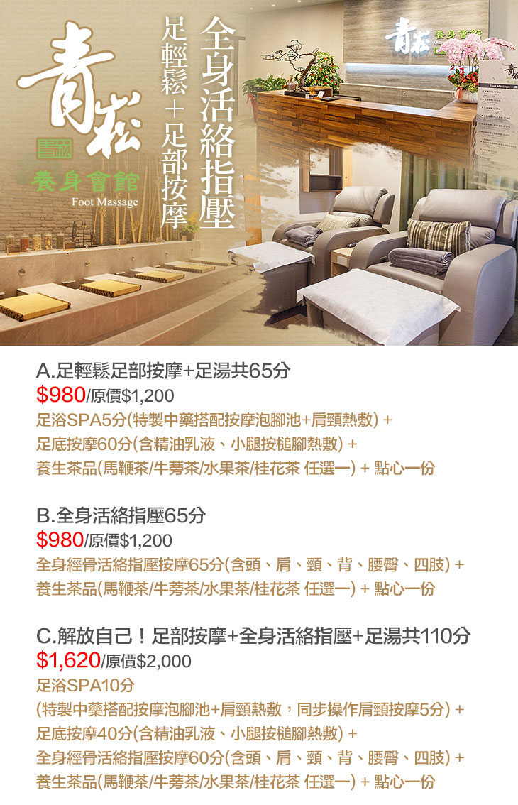 C.解放自己!足部按摩+全身活絡指壓+足湯共110分