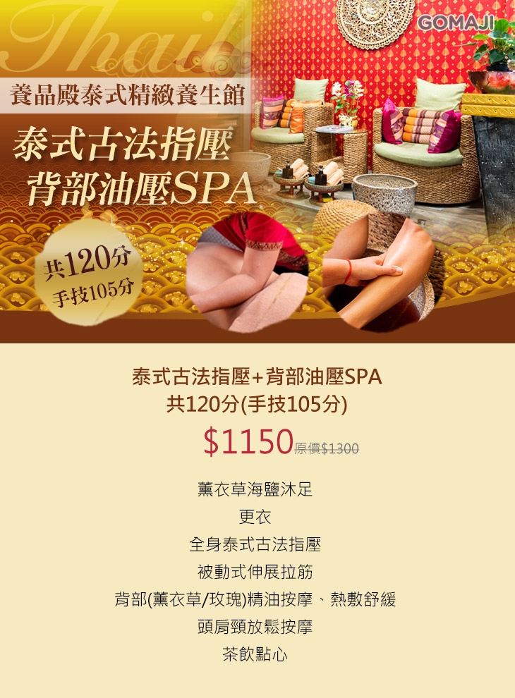 ★ 泰式古法指壓+背部油壓SPA共120分(手技105分)