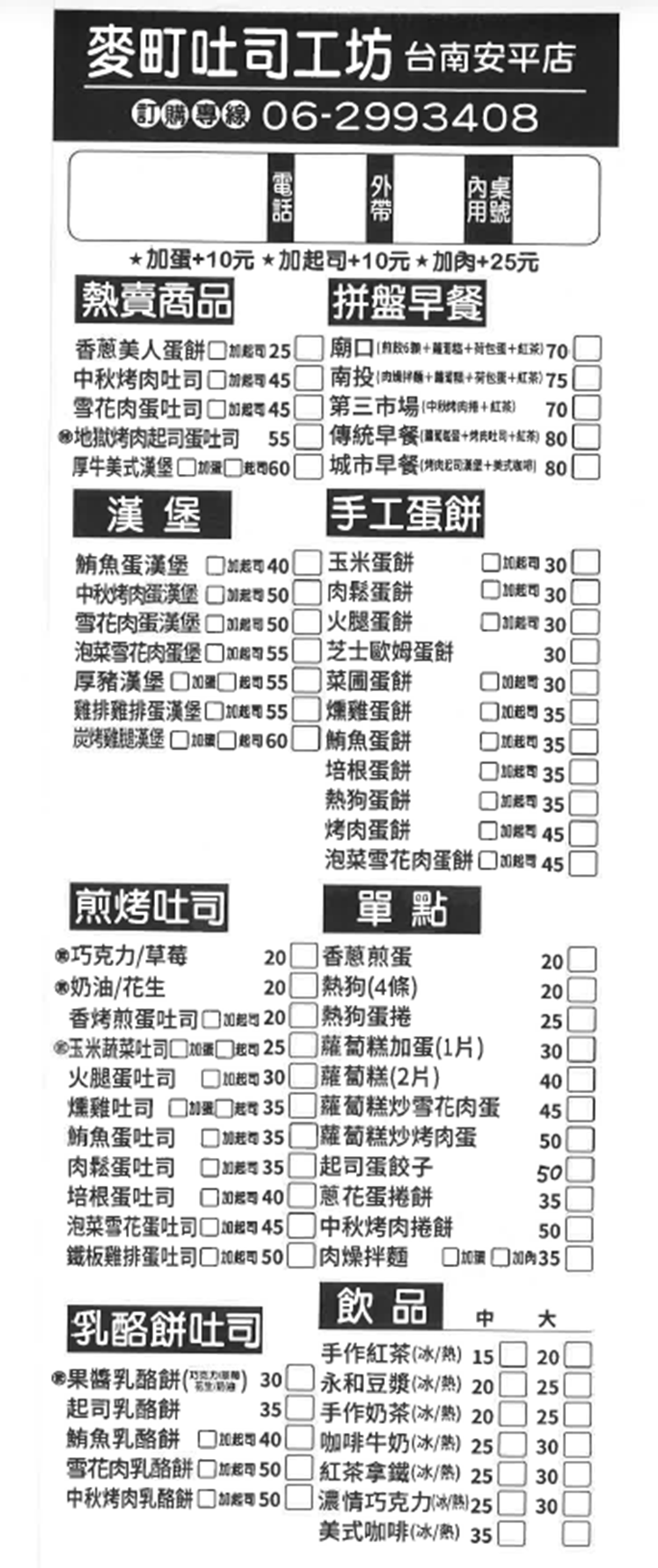 不知道您是否和我一樣,遇到好玩的景點,會分享;遇到好吃的美食或餐廳,會打卡,在網路盛行的時代裡,IG tag@、臉書打卡、GOOGLE評論已成了國人吃喝玩樂資訊參考的指標。今天,GOMAJI團隊就要為各位介紹一間,位在擁有「美食之都」美稱的台南安平區健康二街上,餐點販售以各式具特色及創意的早午餐點餐廳,名為【麥町吐司工坊】。GOOGLE評價五顆星,美味及魅力指數不輸五星級餐廳!從食材品質的挑選、料理製作的方式、餐點組合的講究到創意菜色的取名,每一個環節都能看出店家的用心與付出的心血,任何步驟都不馬虎、不輕易帶過!