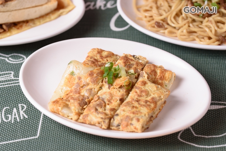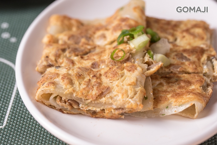南部ㄟ口味 - 菜圃蛋餅,煎檯火開啟,油一熱,店員以迅速俐落的手腳,將雞蛋打散加入菜圃,與蛋餅一同料理,烹煮過程中,菜圃與雞蛋不斷散發的香氣,迷人可口!不一會兒美味上桌,餅薄脆酥香、菜圃蛋鹹香脆口!無論單吃或是沾點佐醬品嚐,菜色新穎、口感獨特!推薦給您!