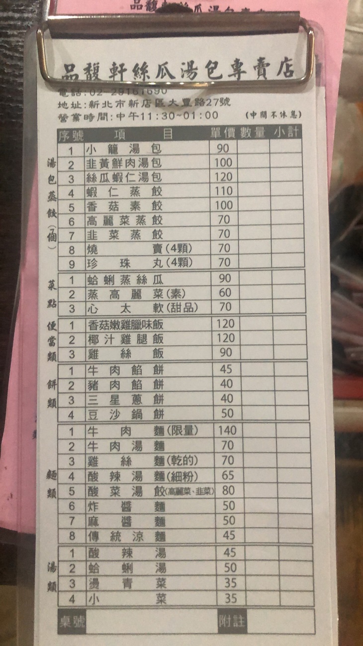 品馥軒絲瓜湯包專賣店 MENU