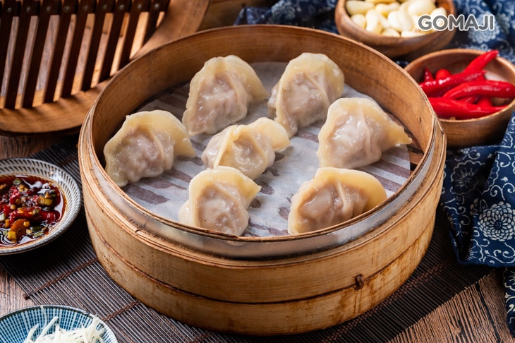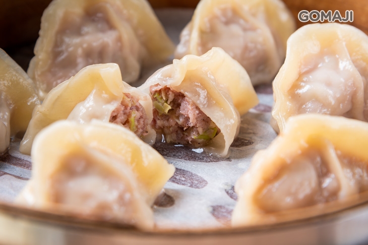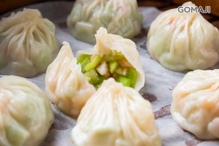 桿得薄薄的外皮,包著豐富美味的自製內餡,經過蒸煮後,蒸餃呈半透明狀,隱隱約約可以看出裡頭藏著什麼樣的驚喜,一口品嚐,皮Q軟彈牙、高麗菜餡甜脆鮮香!層層堆疊而起的餃子摺痕,除了看出主廚精湛的手藝,更能體會其注入的用心!