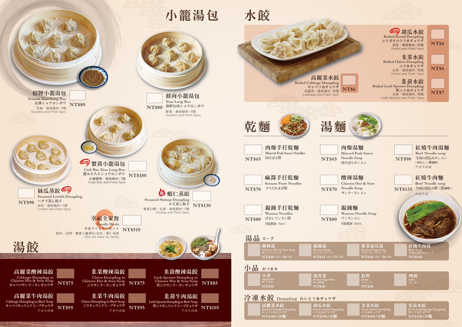 | 鮮 肉 小 籠 湯 包 |