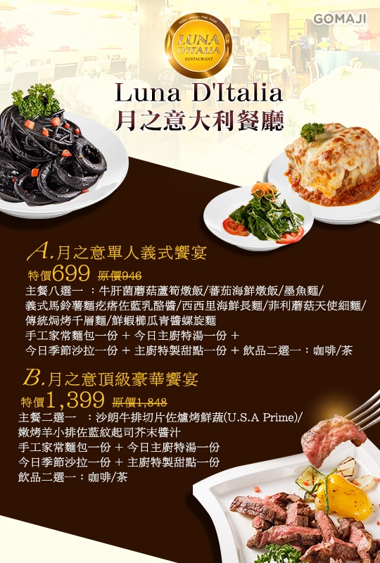 【Luna D'Italia 月之意大利餐廳】感謝麻吉們熱烈搶購,已全數賣光光。