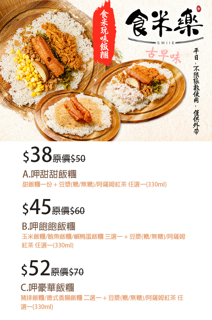 ※本優惠僅供外帶,實際包裝方式以現場為主。