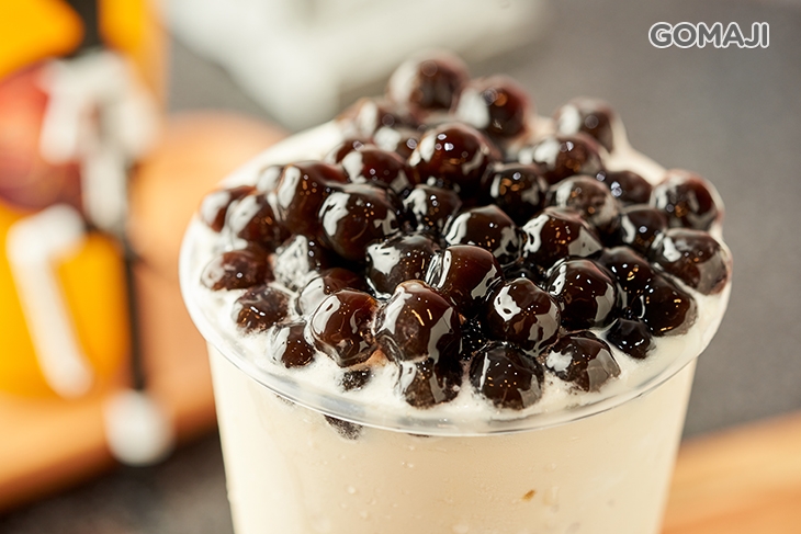 顆顆飽滿圓渾的珍珠,軟硬程度恰到好處,香甜滋味搭配奶香濃郁的冰沙,口感可說是更上一層樓,每天來一杯也不會膩!
