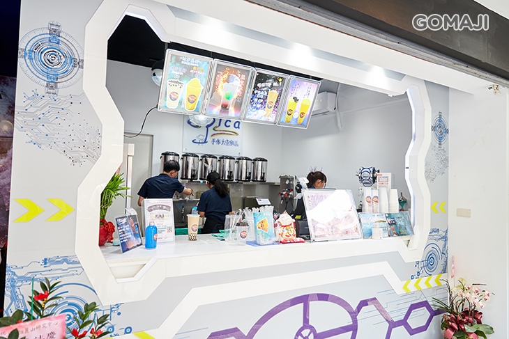 近捷運港墘站、內湖高工、麗山國中!瞧這亮眼的外觀讓人不停下來多看幾點都難!以太空系列為主軸,推出多樣創意飲品!嚴選新鮮原料,用心調配每杯飲品,完美比例製作造就出無可挑剔的好味道,歡迎愛嚐鮮的您一同進入夢幻的太空世界!