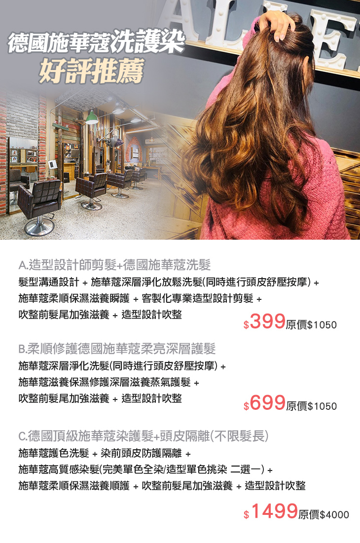 A.造型設計師剪髮+德國施華蔻洗髮