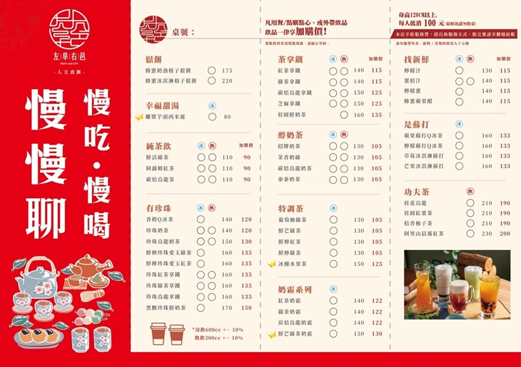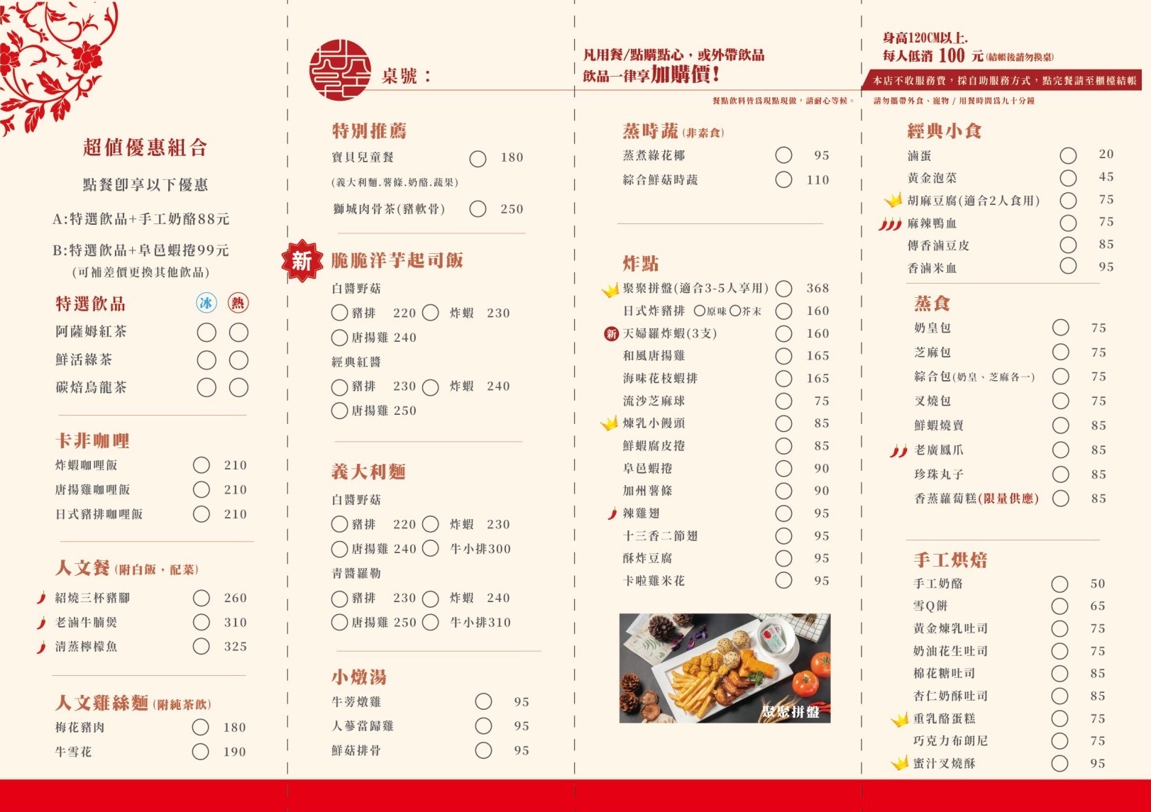許多人總認為,複合式餐飲不過是一般的簡餐加上飲品、零嘴罷了,但為了走出不一樣的路,堅持餐點、飲品一律以真材實料現點手作,捨棄快速、便利的懶人包餐點,所有料理均由顧問團隊研發推出,每一季都會有新菜色來嘉饕消費群眾,一切的細膩及用心都只為「以客為尊‧視客如親」。