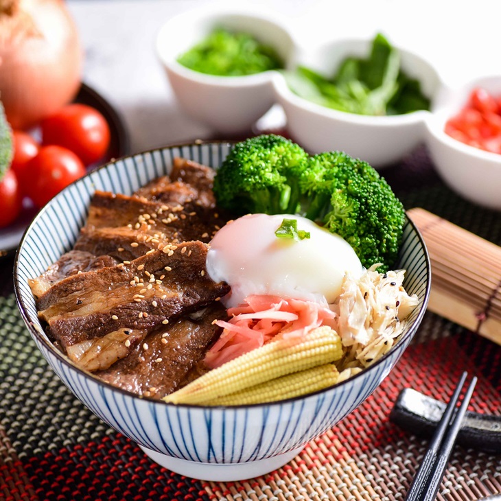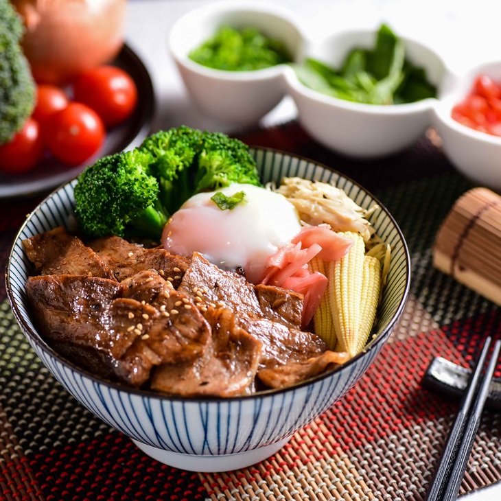 特選牛,烹飪得軟嫩適中,搭配軟Q米飯、美味配菜及靈魂水波蛋,將蛋戳破,金黃蛋液為肉片與米飯涮上一層美麗的色彩,大口品嚐,肉嫩味佳,無肉不歡的您,這道必嚐無疑。