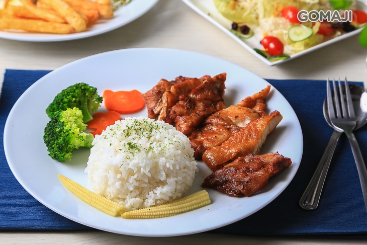 老闆堅持選用新鮮雞腿肉及迷迭香等香料,將雞腿外皮煎得香脆,一口咬下雞汁四溢、外脆內軟,與白飯及水煮青菜的搭配,噴香不膩口,好好吃!