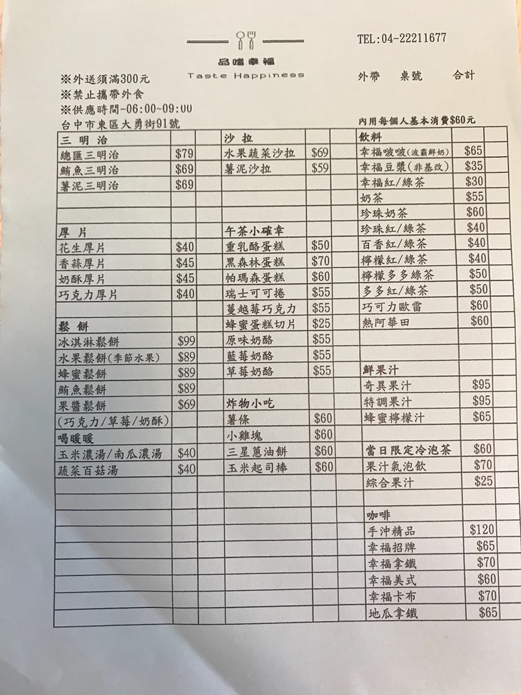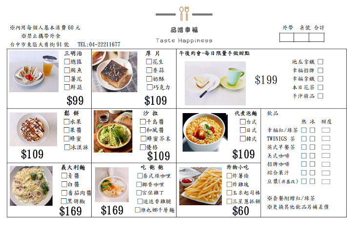 日子總是庸庸碌碌的過著,好想放慢腳步來份餐點或咖啡悠閒一下。近新時代大魯閣的【品嚐幸福】,提供各式輕食、飲品、咖啡等餐點,店內裝潢清新單純,讓忙碌的您能有個所在盡情放鬆、不受打擾,也很適合與閨蜜們一起來個下午茶約會。忙碌的生活需要一點美食佳餚來慰藉,快來一起「品嚐幸福」吧!