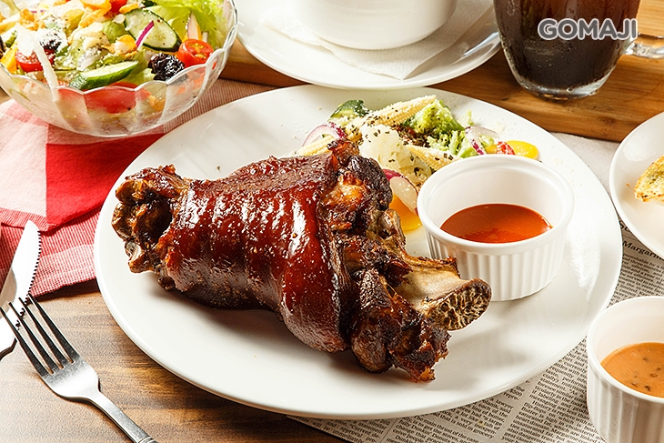 招牌穀倉特製豬腳帶有誘人的光亮色澤,令人光看著就垂涎欲滴,經過多道美味工序製成,外皮烘烤得酥脆鹹香,搭配細緻附有膠質的豬腳肉,佐以特製醬料一同品嚐,彈跳在每一口的細緻嫩肉與鹹香適中的風味,難以抗拒的香氣與油脂佈滿齒頰之中,榮登饕客必點的排行榜之一,非常值得點來品味一番!