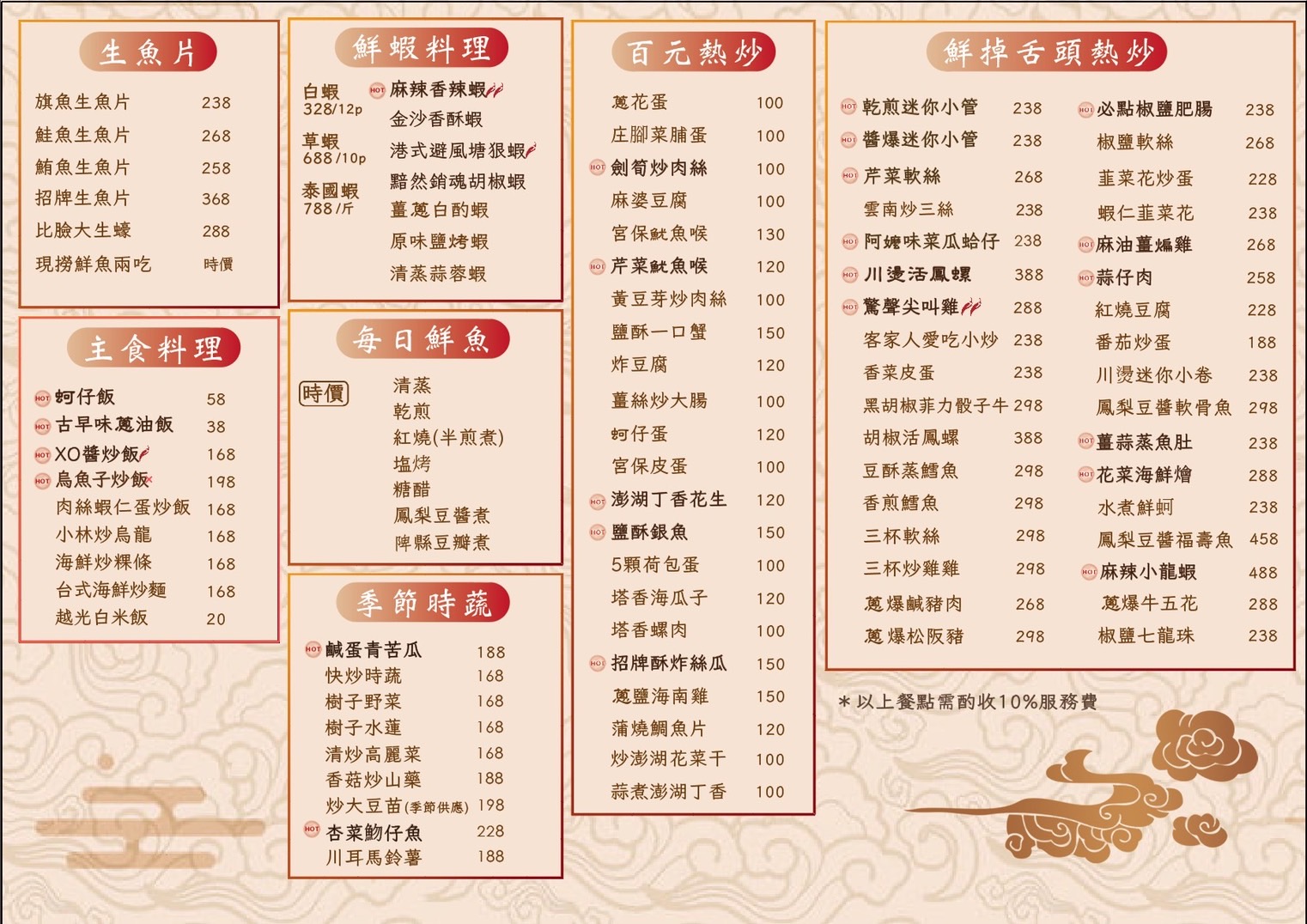 ※菜色內容依季節時令調整,實際菜色、價目依現場提供為主