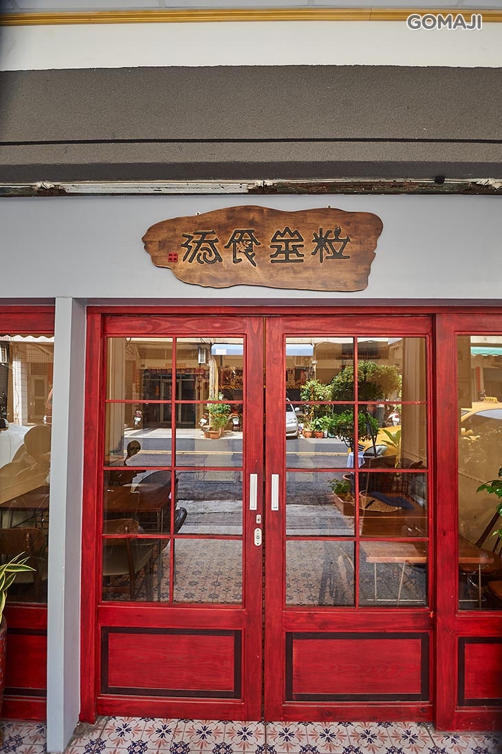 傳統中國風的門面,以暗紅色的門框搭配刻有特色字體的木招牌,即便老建築翻新,也沒有變化太多,讓原有的古早傳統面貌留下,僅透過一點裝飾點綴,讓老宅美麗的背後還保留那麼一點歷史文化與故事的痕跡。