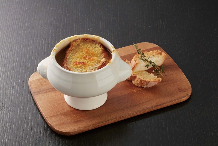 將洋蔥細細熬燉入味的法式洋蔥湯,濃郁的湯頭蘊含著豐富的洋蔥清甜,入口後滿滿的洋蔥香氣便瞬間擴散在齒唇之間,韻味醇厚,十分迷人,單喝是一種享受,以烤得香酥的麵包沾取品味,滋味更是別有風格,單單一品,就能變化出兩樣相異的吃法,美味各有春秋,您一定要親身來體會!