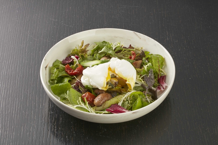 水波蛋看似簡單,但要料理出一顆完美的水波,其實很不容易!【北緯二十五】嚴選品質最上等的優質雞蛋,經由主廚精湛的廚藝悉心料理,匯集彈嫩、水潤口感於一身的極品水波蛋即刻誕生!將雪白色的蛋白用刀子切開,金黃香濃的半熟蛋黃瞬間流出,濃稠的香醇蛋液拌在清爽的蘆筍沙拉中,為爽脆風味添抹了一絲溫潤,佐入氣味獨特、馥郁的松露醬汁品嚐,層次豐富令人驚豔!