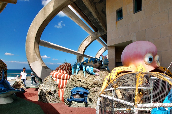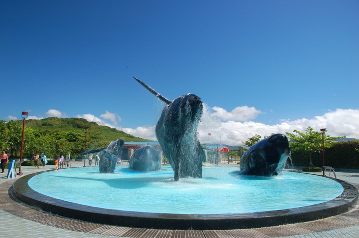 入口處有太平洋親水廣場及鯨魚親水廣場,皆以等比例製作的實體模型展示,前者呈現台灣東部海域常見的海豚,旗魚等,後者有大翅鯨跟幼鯨躍出水面,抹香鯨噴水換氣,遊客可在此廣場中戲水消暑,享受南台灣的陽光和沁涼的水意。