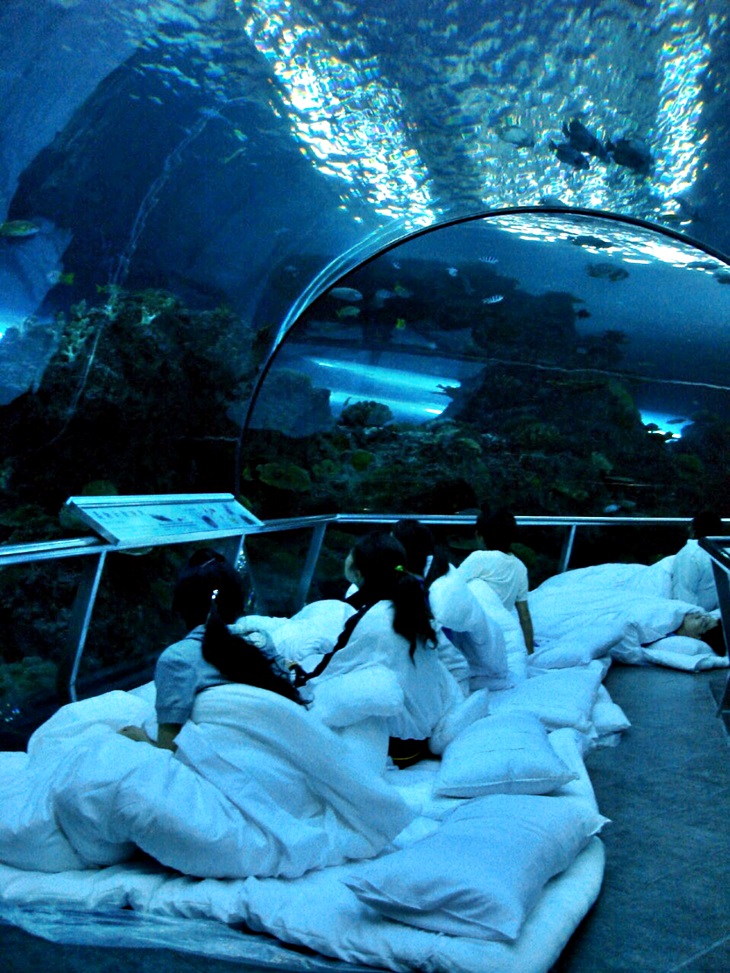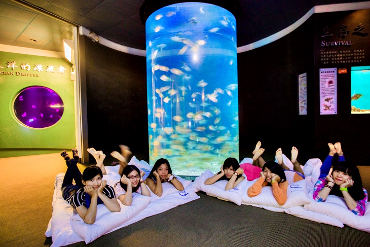 屏東海生館是全國最大的水族博物館,近年來館方舉辦夜宿海生館活動,讓大家看看太陽落下後海生館的另一種風情與夜晚的滿天星空。入住海生館除了可以睡在大型水族缸旁邊,夜訪館內海洋生物,還有最特別的夜宿獨享後場參觀體驗、潮間帶導覽,與大洋池餵食解說,有機會一定要帶小朋友來住一晚,體驗完全不同的海生館。住宿海生館分為台灣水域、海底隧道、白鯨區、甲板區、極地區與海藻森林及鯊魚區7個區域,其中最受歡迎的就屬可以被魚兒環繞的海底隧道與可愛小白鯨區。標準行程活動報到時間是16:00,可提前入館參觀再去報到,館內提供足夠的置物櫃與寬敞的衛浴空間,入住皆含早餐、晚餐及宵夜。