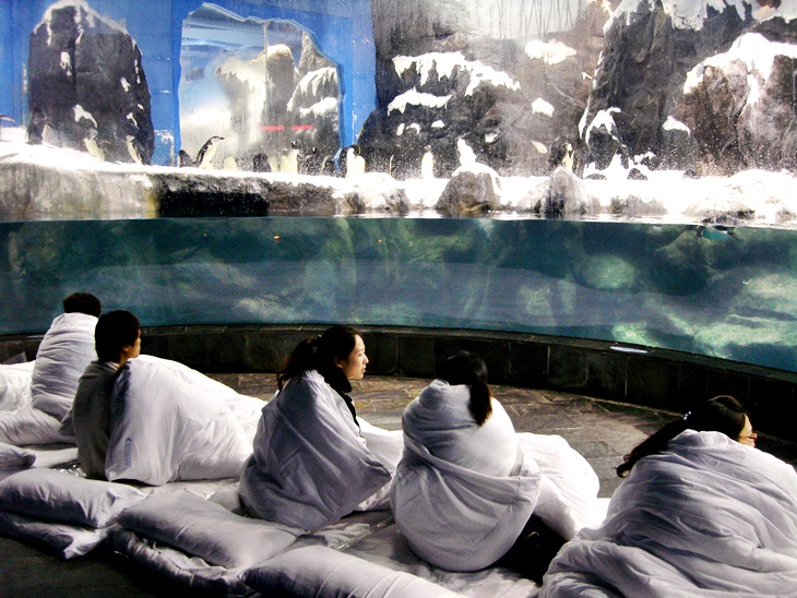 在熄燈之後與俄羅斯白鯨、南極企鵝、深海魚群一同入睡,給你入住深海世界的獨特體驗。