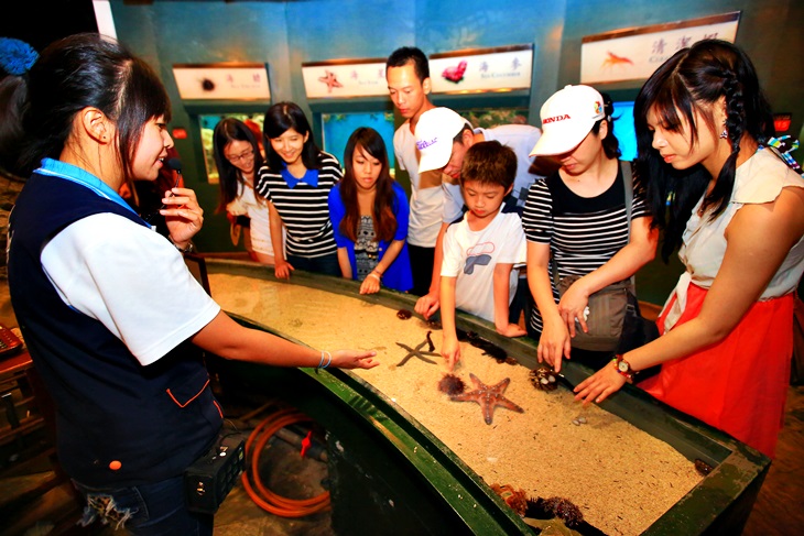 ➤ 由專業解說員帶領導覽,參觀展示館及後場魚缸上方餵食區揭密、隔日造訪戶外潮間帶,學習豐富的海洋知識。