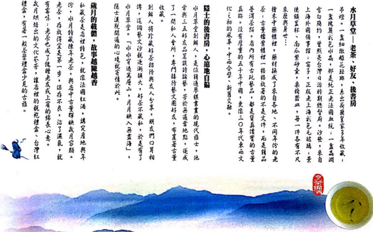 ❀ 從裝潢到整體擺設,全來自店家的巧思與珍藏!靈活運用富有年代與歷史意義的飾品,將店裡的空間自然劃出不同時空的界線,與它們一起相處,在這裡靜靜地喝著老闆親手泡的茶、聽著老闆說著自己的故事,更進一步拉近您我之間與【水月草堂】的距離。