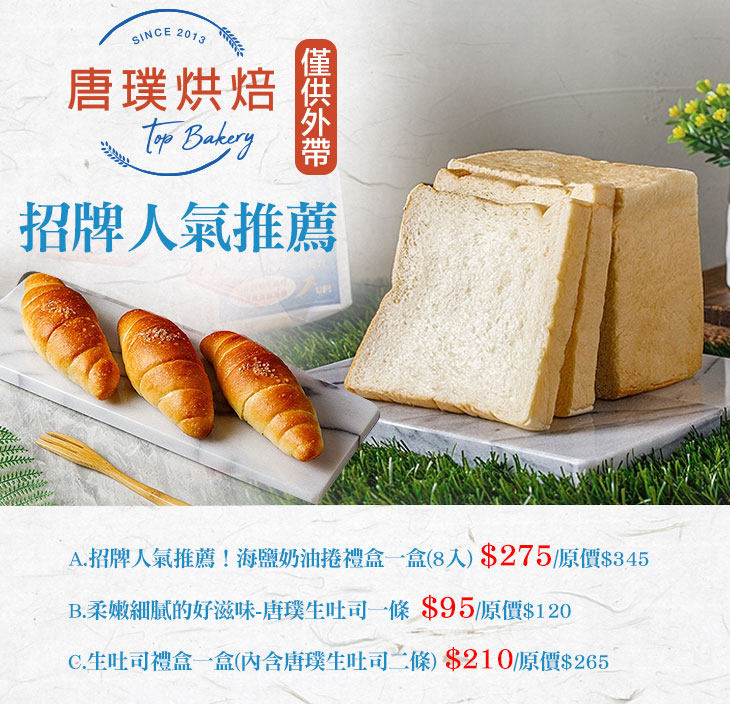 不論您今天來到這裡,是想買份麵包配杯咖啡創造屬於自己美好的下午茶時光,還是購買精緻手做蛋糕、餅乾禮盒作為節慶送禮,櫃上、菜單上有的【唐璞烘焙】都用心製做給您,讓您透過美味,擁有享受幸福的權利。