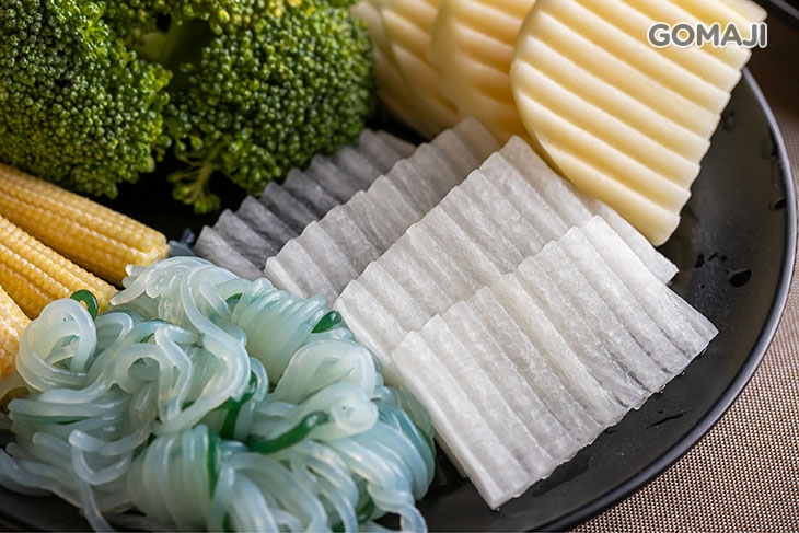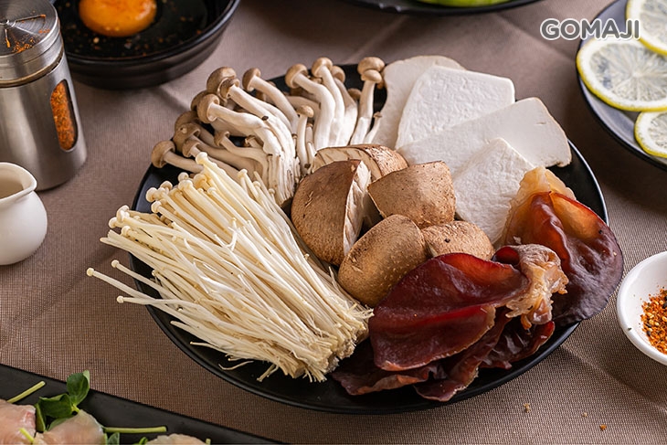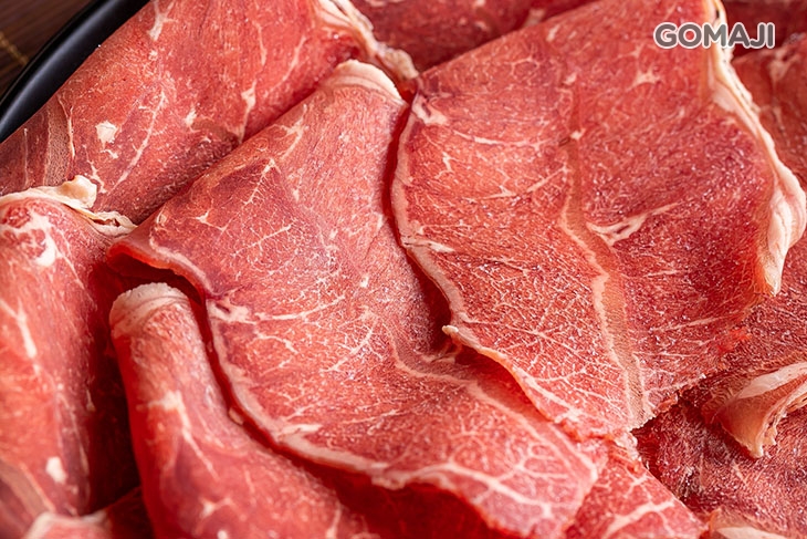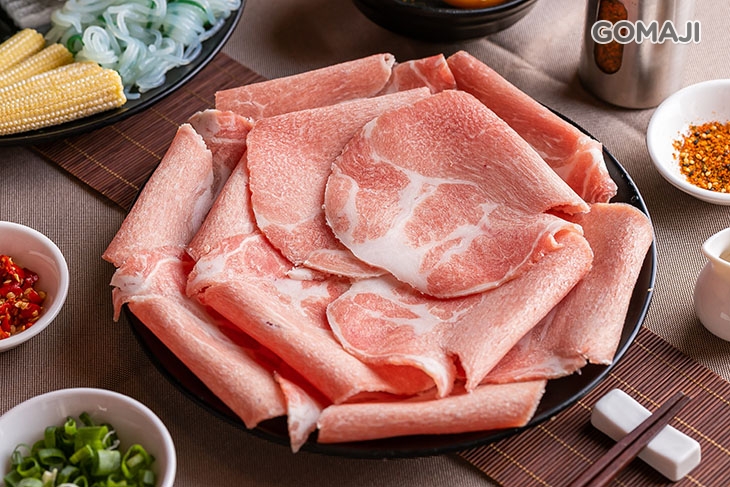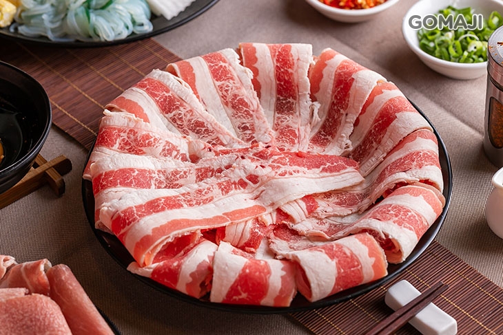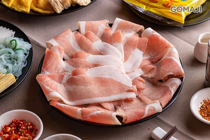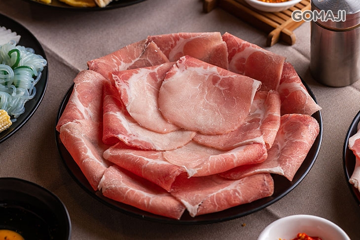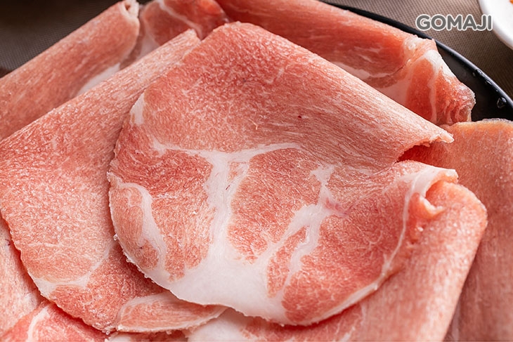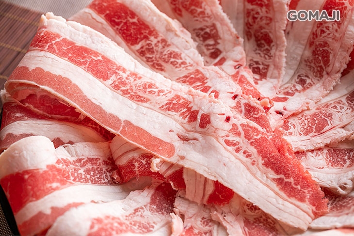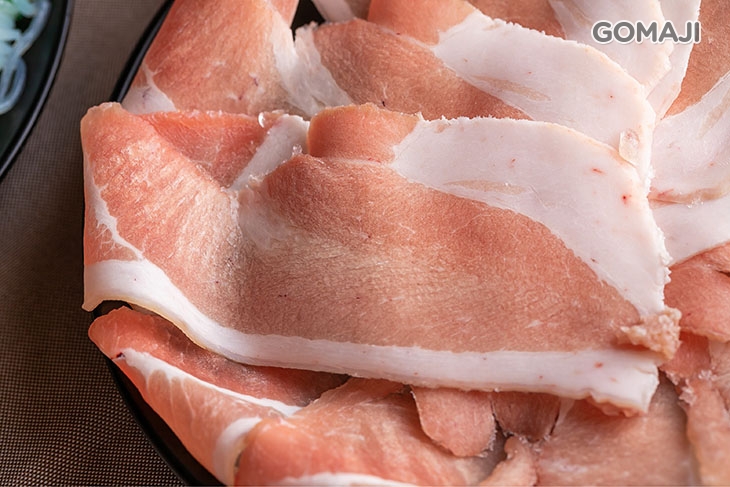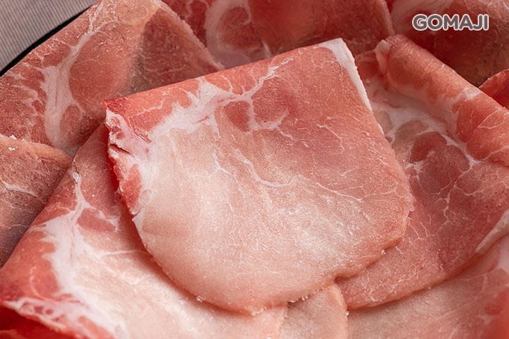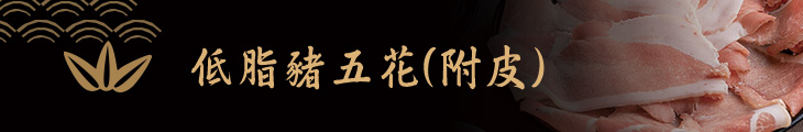 精選油脂含量較低的低脂豬五花,帶皮現切的口感和一般坊間的豬肉片大不相同!低脂的特性讓豬肉原始天然的肉香更加突出,嚐起來十分清爽的美味與口感較為濃厚的壽喜燒湯底極搭!