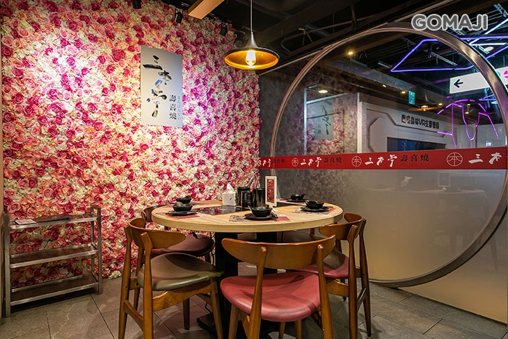 偌大寬敞的店面空間,以花朵點綴細節,勾勒出簡約風雅、細節精緻的日式風格,搭配大片宜人的窗景,一邊享受美味的壽喜燒,一邊觀賞桃園街道景緻,讓您品味美時不僅是味蕾享受、視覺也被大大滿足!體會味、視覺雙享的幸福用餐時光!