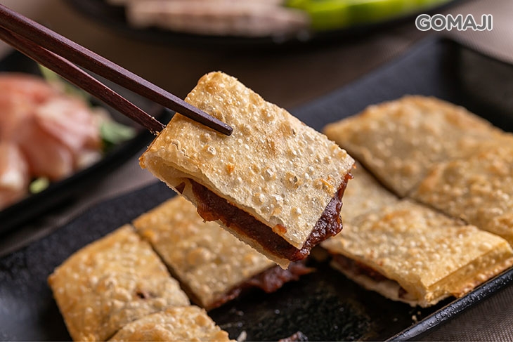 【三本亭】還有一個深受青睞、與眾不同的「日式紅豆餅」!甜香氣息便讓金黃脆香的麵衣中,綿密的紅豆餡入口即化,甜而不膩的滋味是來自紅豆最天然的甜味,餐後來上這麼一份,實在好幸福!