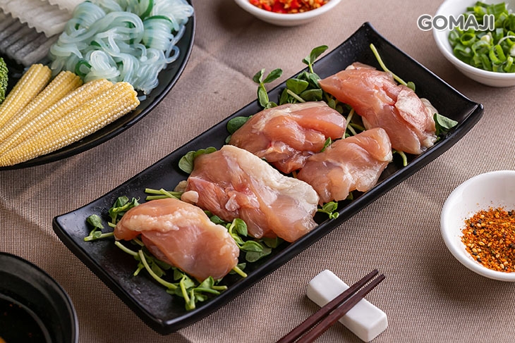 肉質新鮮、彈嫩又低脂的雞胸肉,口感意外地不乾不柴,放入壽喜燒湯底中慢燉入味,那甘醇馥郁的湯頭底蘊,滴滴滲入雞肉當中,每一口都充滿彈性,以及滿滿的雞汁和湯水精華!