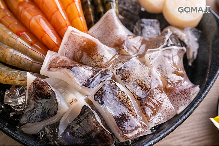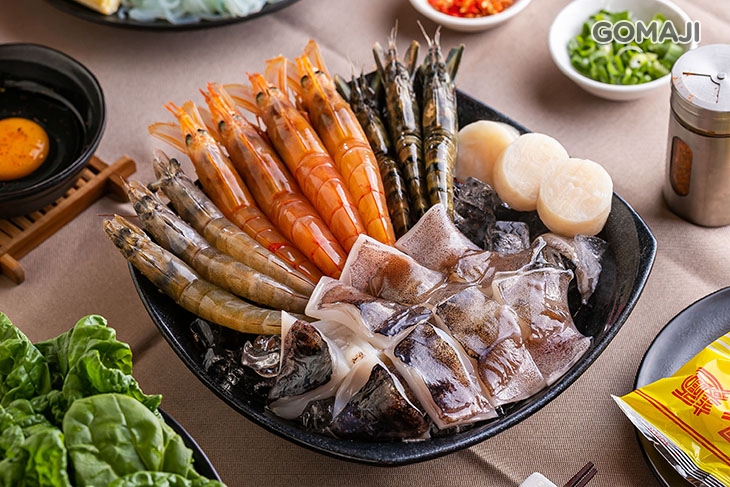 嚴選三種不同品種的鮮蝦,加上干貝…等新鮮海料,碩大肥美的口感、各個都甘甜、味鮮,魅力叫人難以抵擋!與嫩肉、時蔬一同放入甘醇濃郁的壽喜燒湯底中細細燉煮,讓海鮮淡淡迷人的海潮香與獨特的鮮味與湯水底蘊結合,絕妙的美味勾勒不同凡響的味覺饗宴!