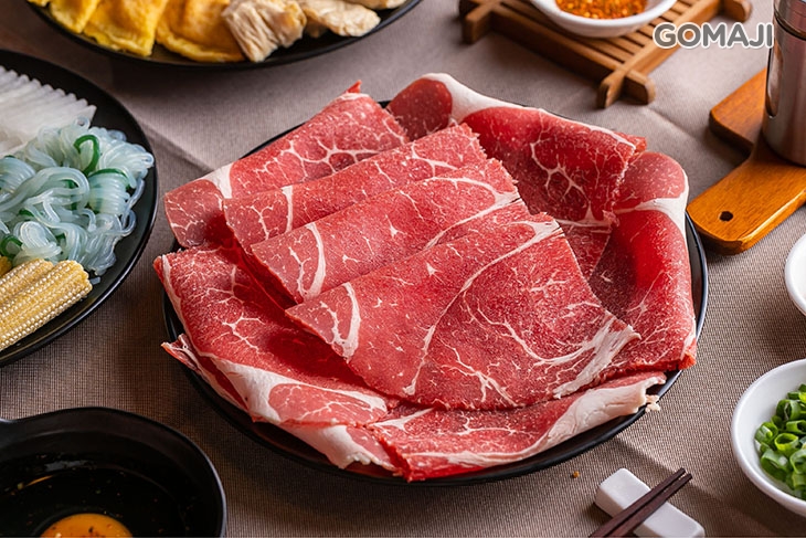油花較少、肉質更有彈性的安格斯牛板腱,瘦肉更多的比例,讓肉片可以吸取更多湯水精華,下鍋涮煮後細細品味,柔嫩的肉質在味蕾爆發陣陣肉香與湯底蘊味,醇濃饗宴叫人愛不釋口!