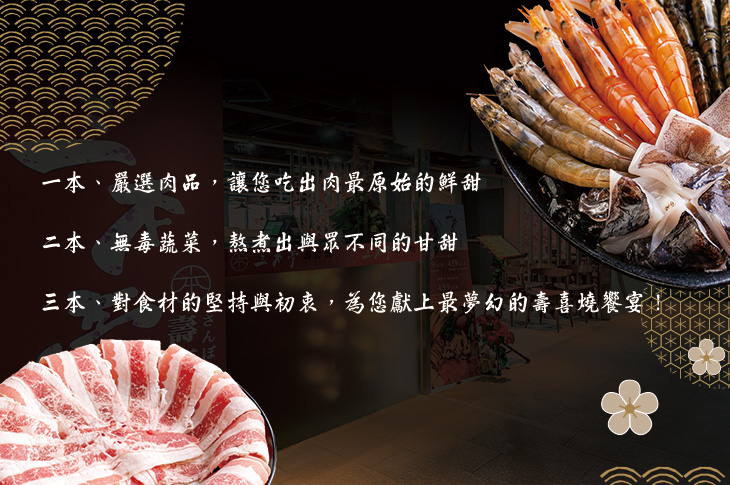 以這樣的信念所經營的「三本亭壽喜燒」,堅持原有、原味、原始的概念,從鮮甜的肉品、有機蔬菜到食材的原味健康,這樣的三本亭堅持所帶來的飲食品質,造就了消費大眾追求飲食幸福感的熱情捧場!