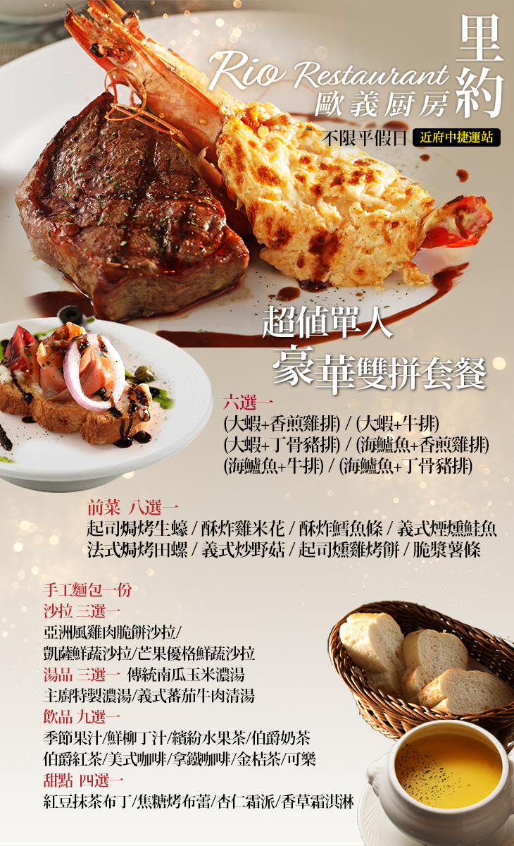 位於熱鬧的府中商圈上,捷運坐到府中站,交通十分便利。提供各式精緻歐、義式料理,舒適的二、三樓用餐空間,精心營造異國風情的氛圍,邀請您來里約歐義廚房一趟,透過他們的美味佳餚,帶給您不同的品味與體驗。
