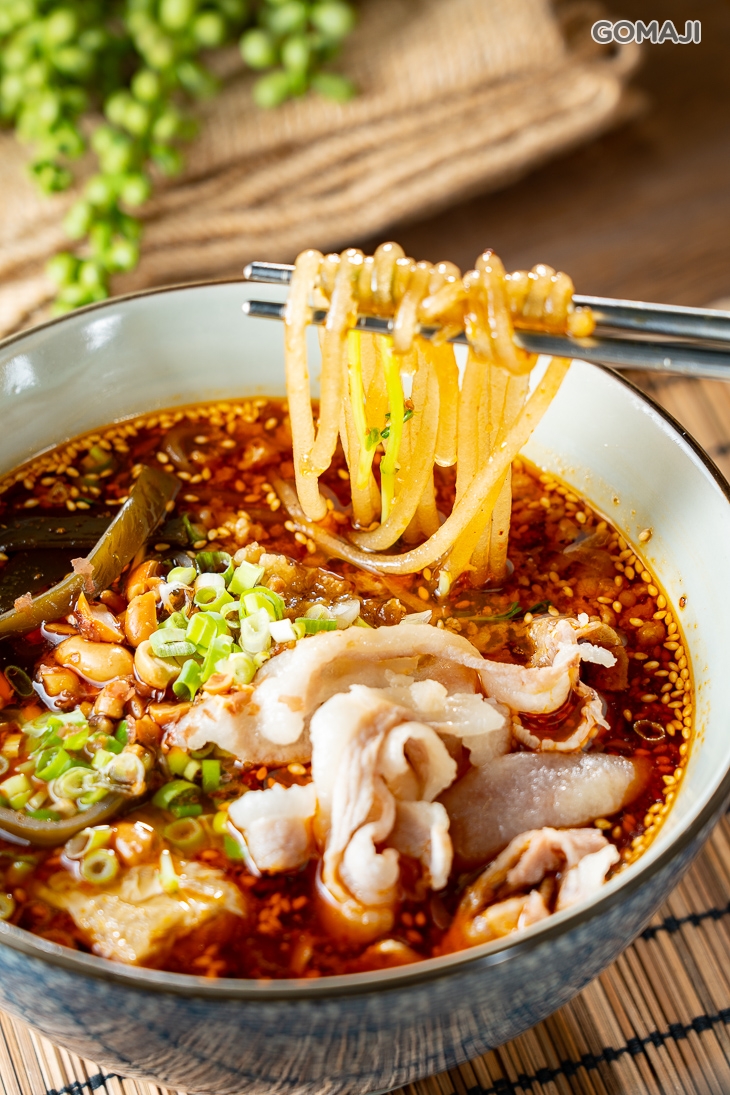 讓人一吃就上癮的酸辣粉,搭配美味松阪豬完美獻上!一層透明鮮紅色辣油,在日光燈的照耀下,閃閃發光,香氣逼人,讓人等不及動筷品嚐,粉絲剔透晶瑩的模樣,彈牙又入味呀 ~ 與酸辣夠勁的湯底與鮮嫩肉片相襯享用,層次豐富,口感一級棒。
